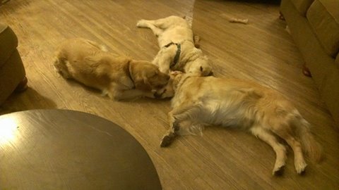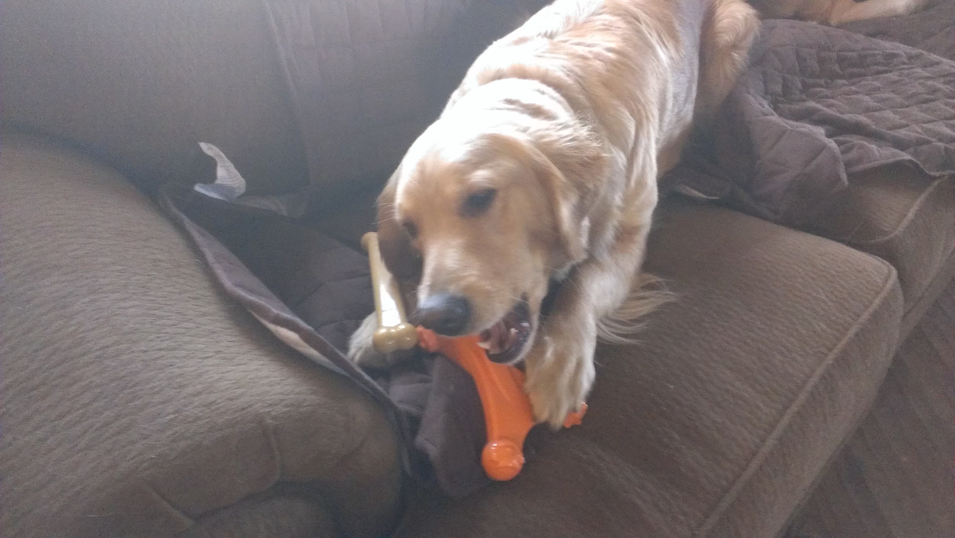 Now for the fun stuff, we brought home 3 new chewing toys for the pups over the weekend, the following pictures show the fun they had.