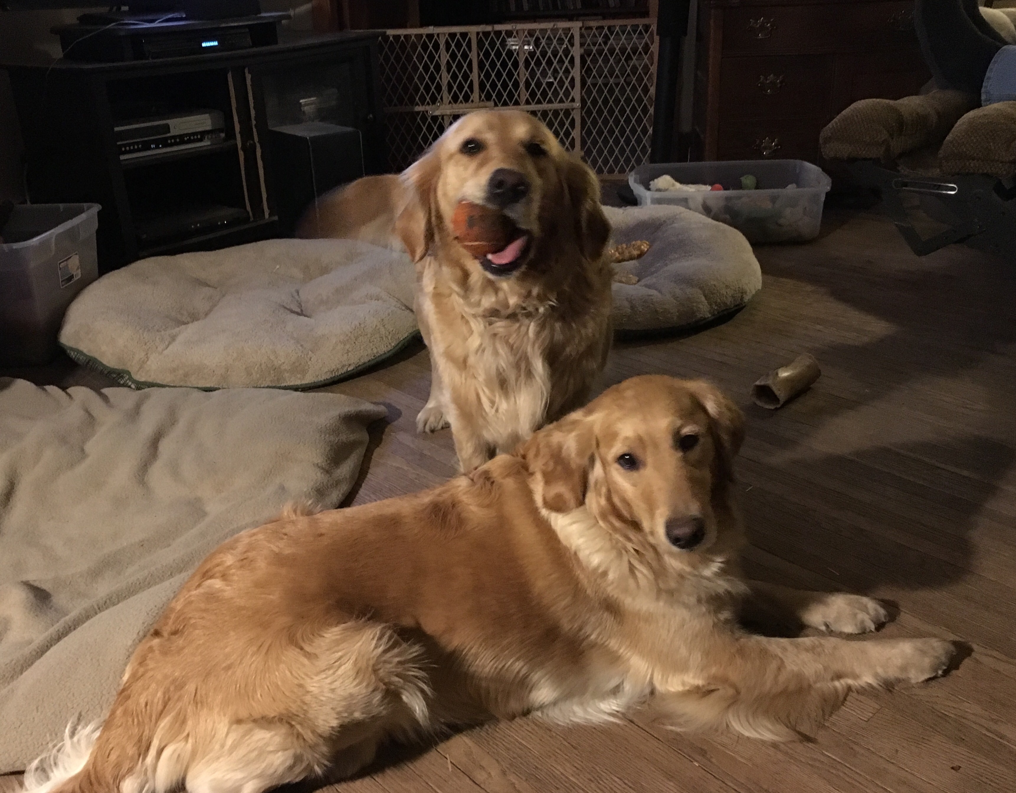 • Hi Mrs. Carolyn! Bonnie’s already ahead of me in the art of tennis ball squeaking, so I ‘m trying to catch up to her! Don’t worry they all get their turns showing off their special skills!