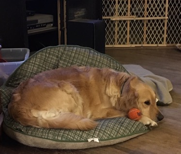Best of all I’m back home with my tennis ball. ~ This is Belle “all is right with my world” pup for the rest of the Pups and Kitties.