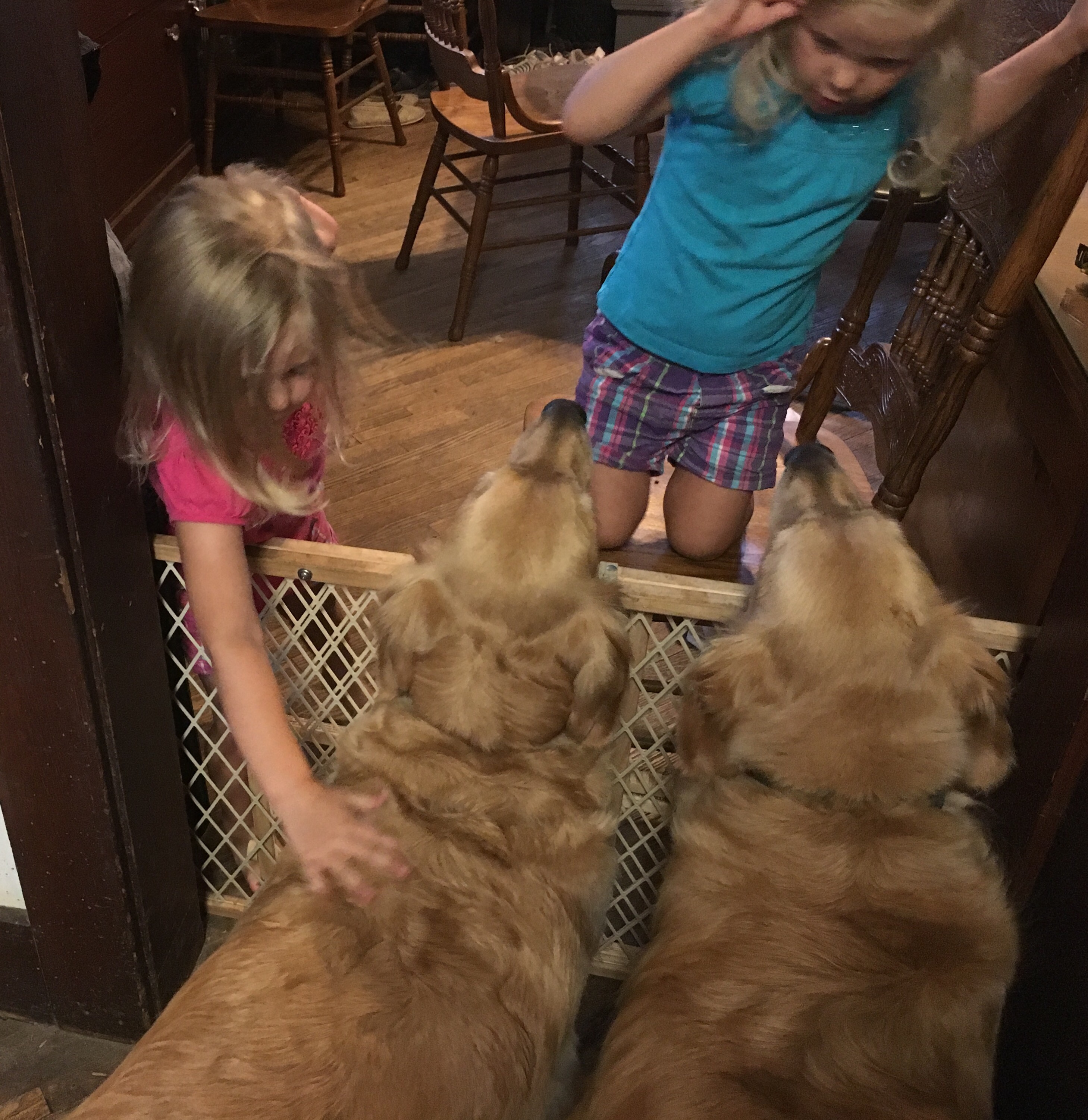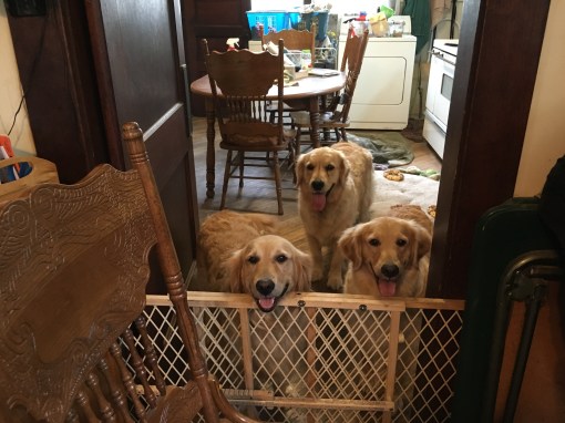 At first we didn’t understand why the door was closed and we wanted to go in the other rooms really bad. Bess kept barking and Bonnie was whining a lot so my Margret opened the door.