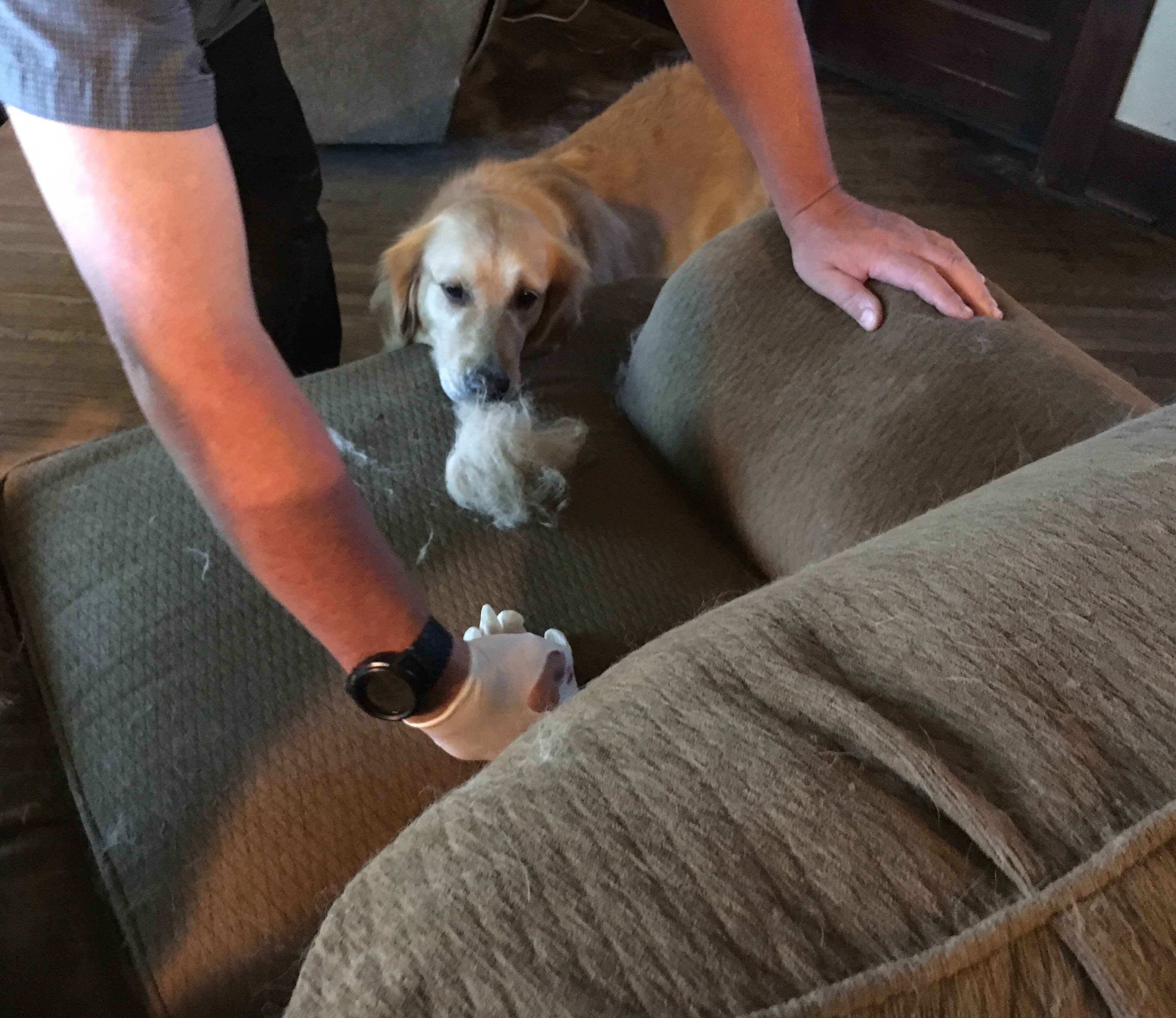 After My Greg brushed me he then started to clean the fur off of the couch. Like a good supervisor I stayed there to make sure he got all if it. By the way he says the kind of gloves nurses and doctors use work great to pick up the fur.