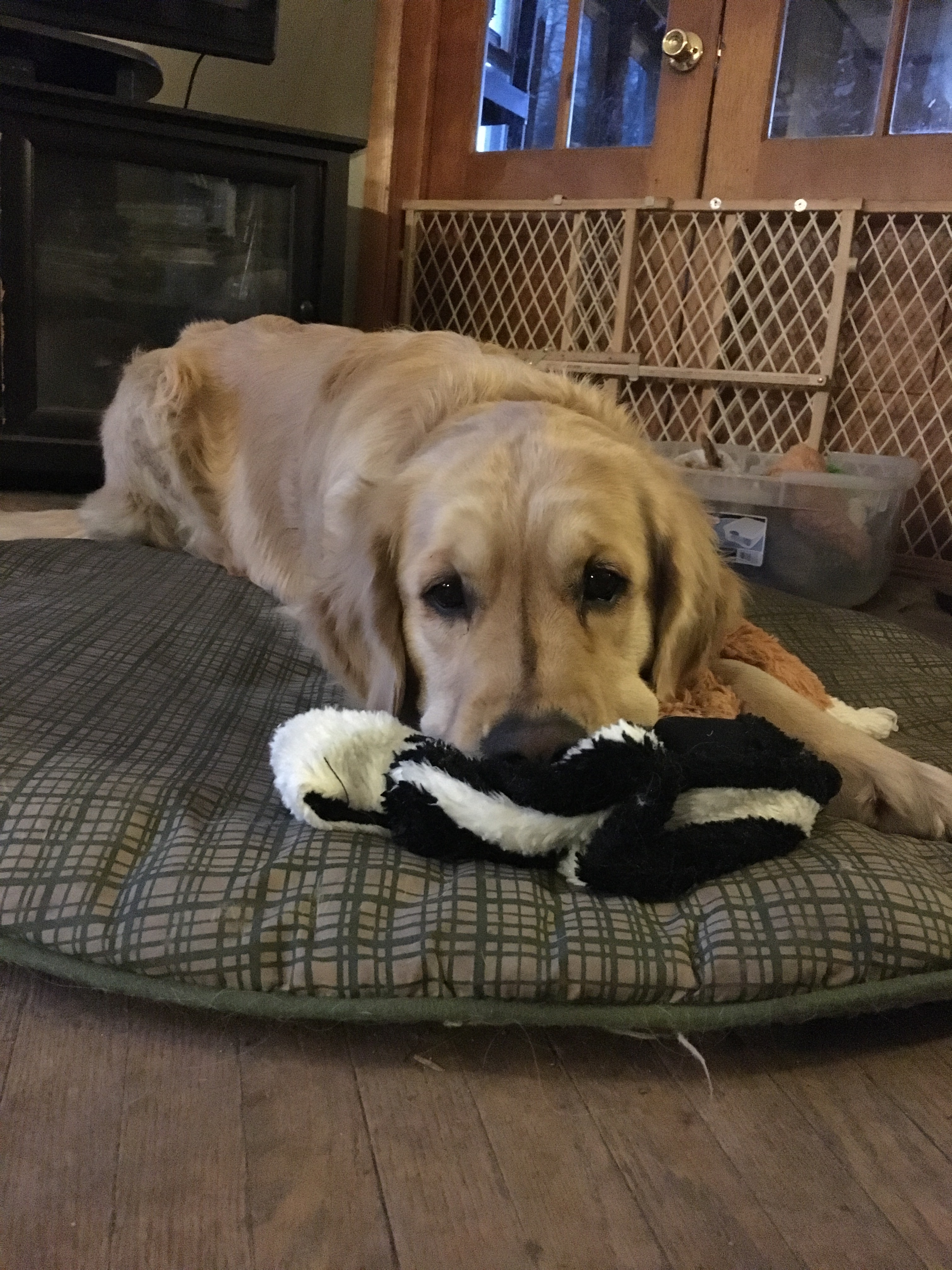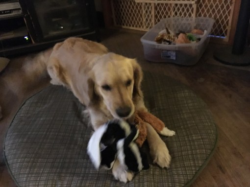 So I went right over to the stuffie bin and grabbed my two favorite ones. I was so happy to have my stuffies back that my tail was a blur it was wagging so fast!