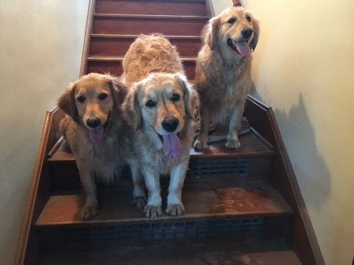1. Our mom broke down and bought one of those super high-powered dryers. With our thick coats, that’s the only way to get us dry. Fortunately, our breeder got us totally used to those at an early age, so we don’t mind it at all. It IS really noisy, so I can see how some pups wouldn’t like it!