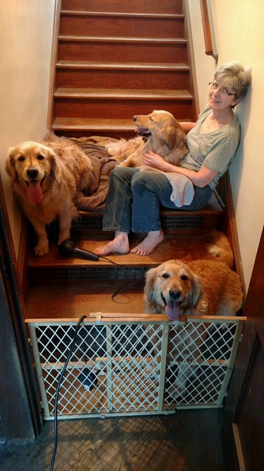 4. Wait a minute — how many got a bath? — three or was there four bodies? The smile and exhaustion on the one with glasses was worth the picture. And how wonderful you all smelled! Bonnie — you just go and have a bath every week!!! Right? Have fun. Now, it’s over! Thanks for the pics. Carolyn