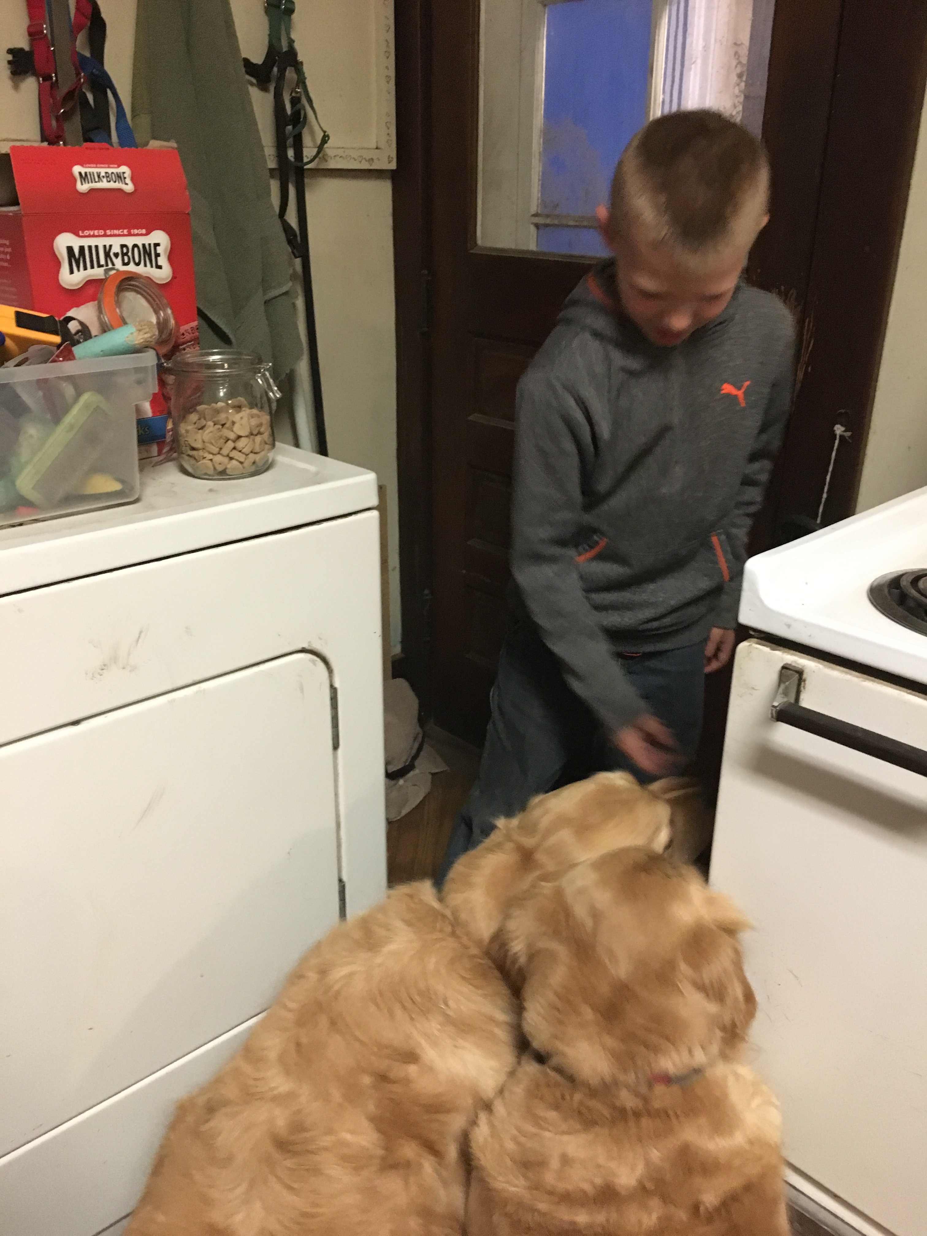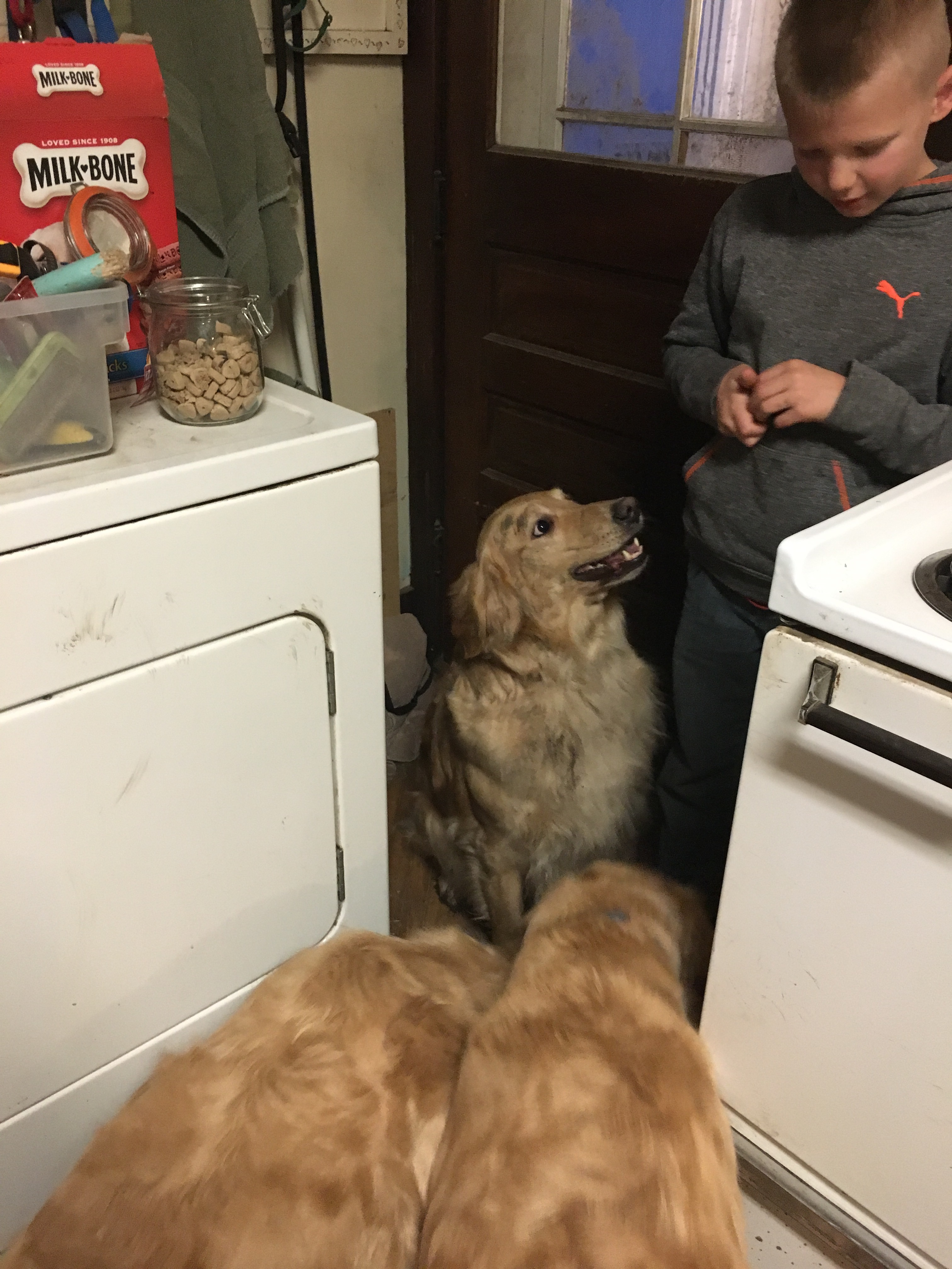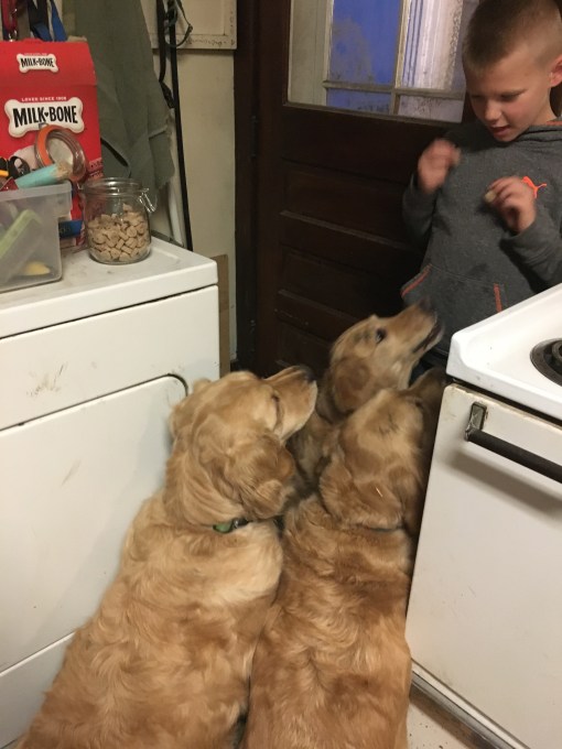 with the pups and Linus; Grandma and Grandpa just finding pleasure in the “it only happens once” scene.