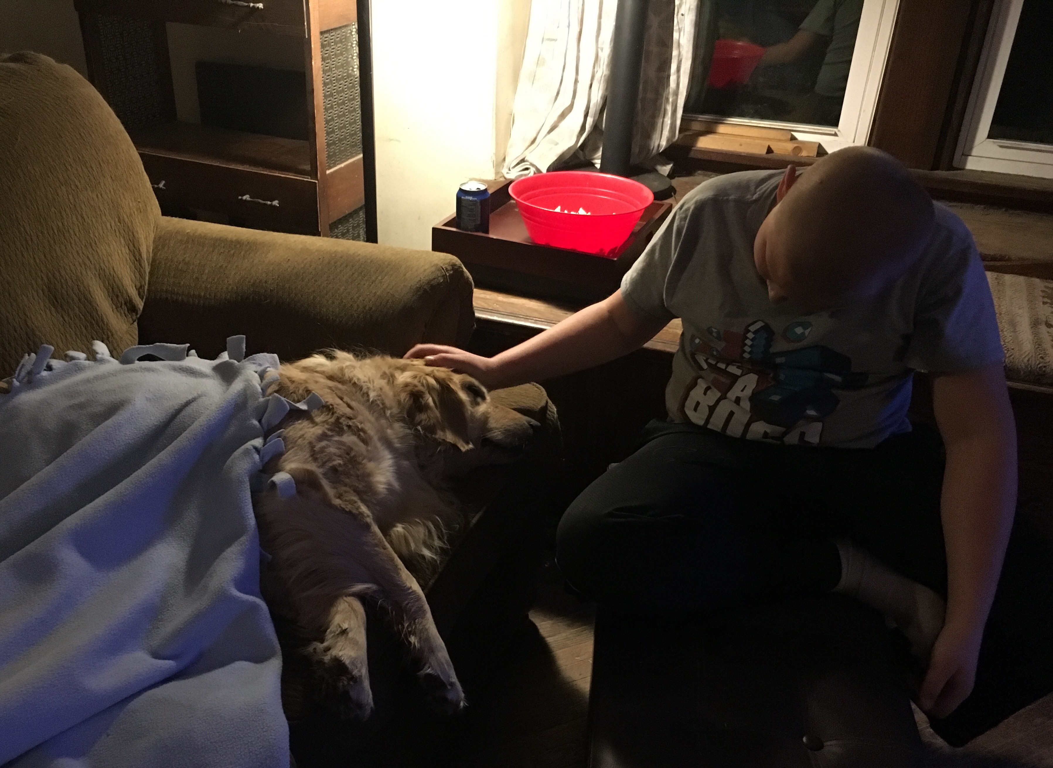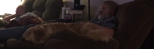 After awhile we all went in the other room and watched a movie. Bessie tried to sit in Aaron’s lap. She liked that he kept petting her even while watching the movie.