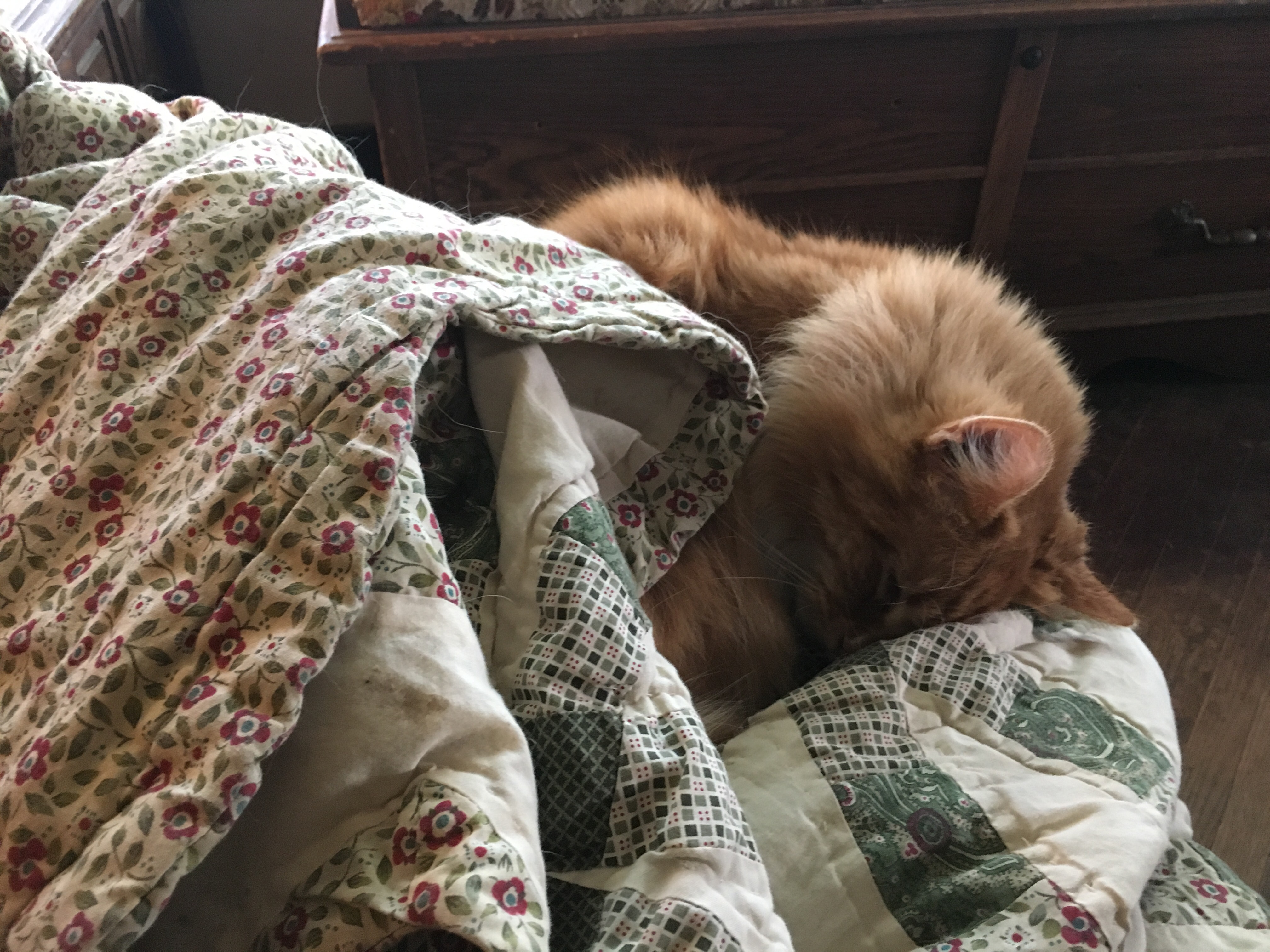 I was really sleepy so she ramped up her efforts by barking in my ear. My Margret wasn’t fast enough to get a picture of me doing a back flip off of my comfy bed.