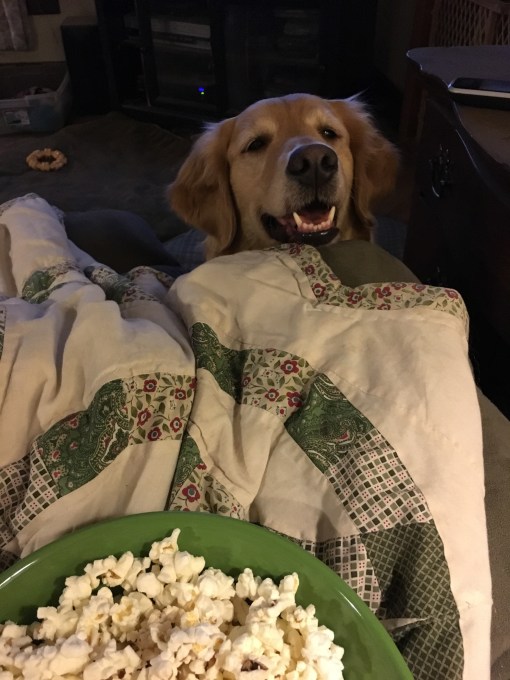 Great pix. Maggie is drooling over that bowl of popcorn!