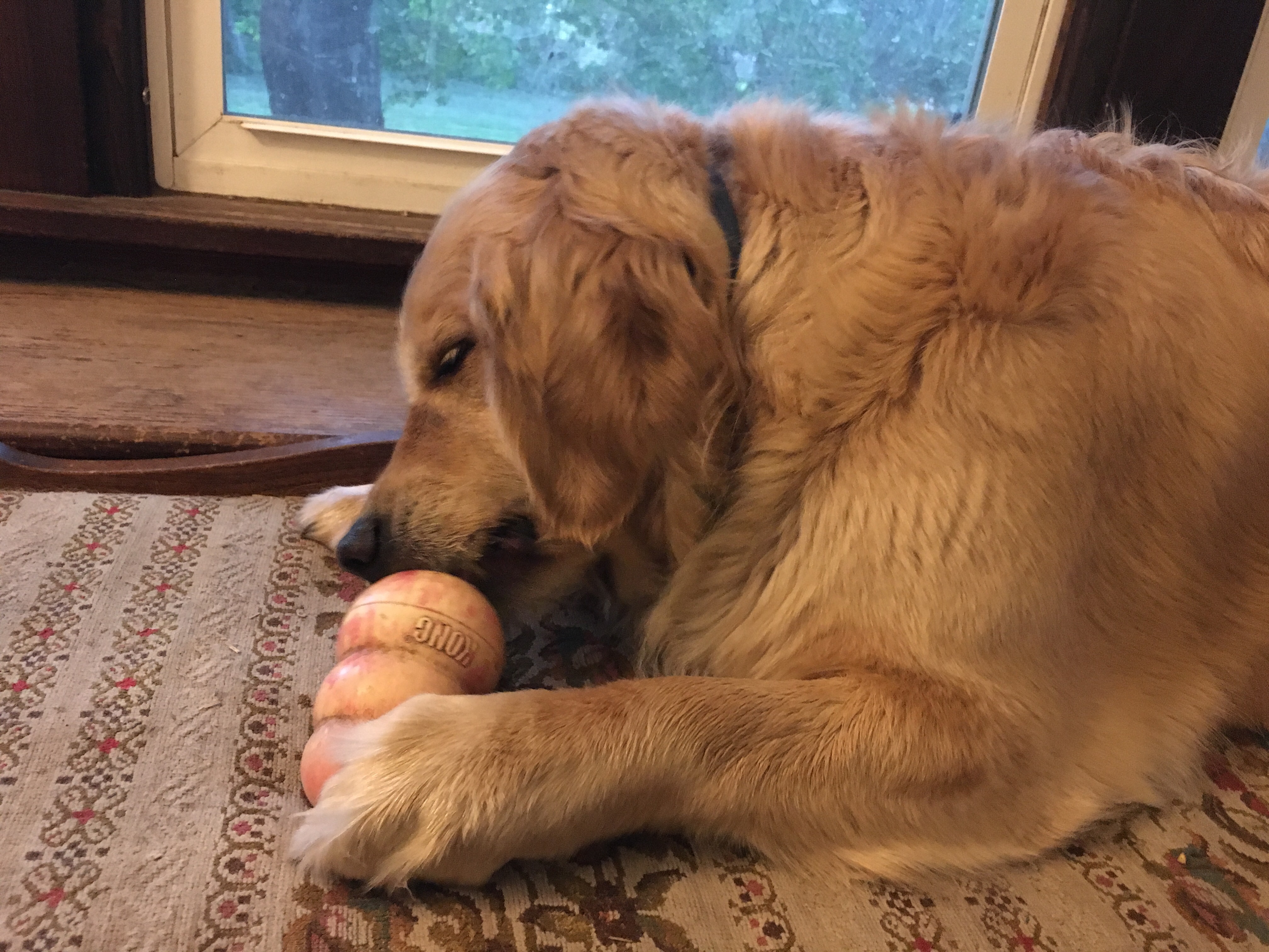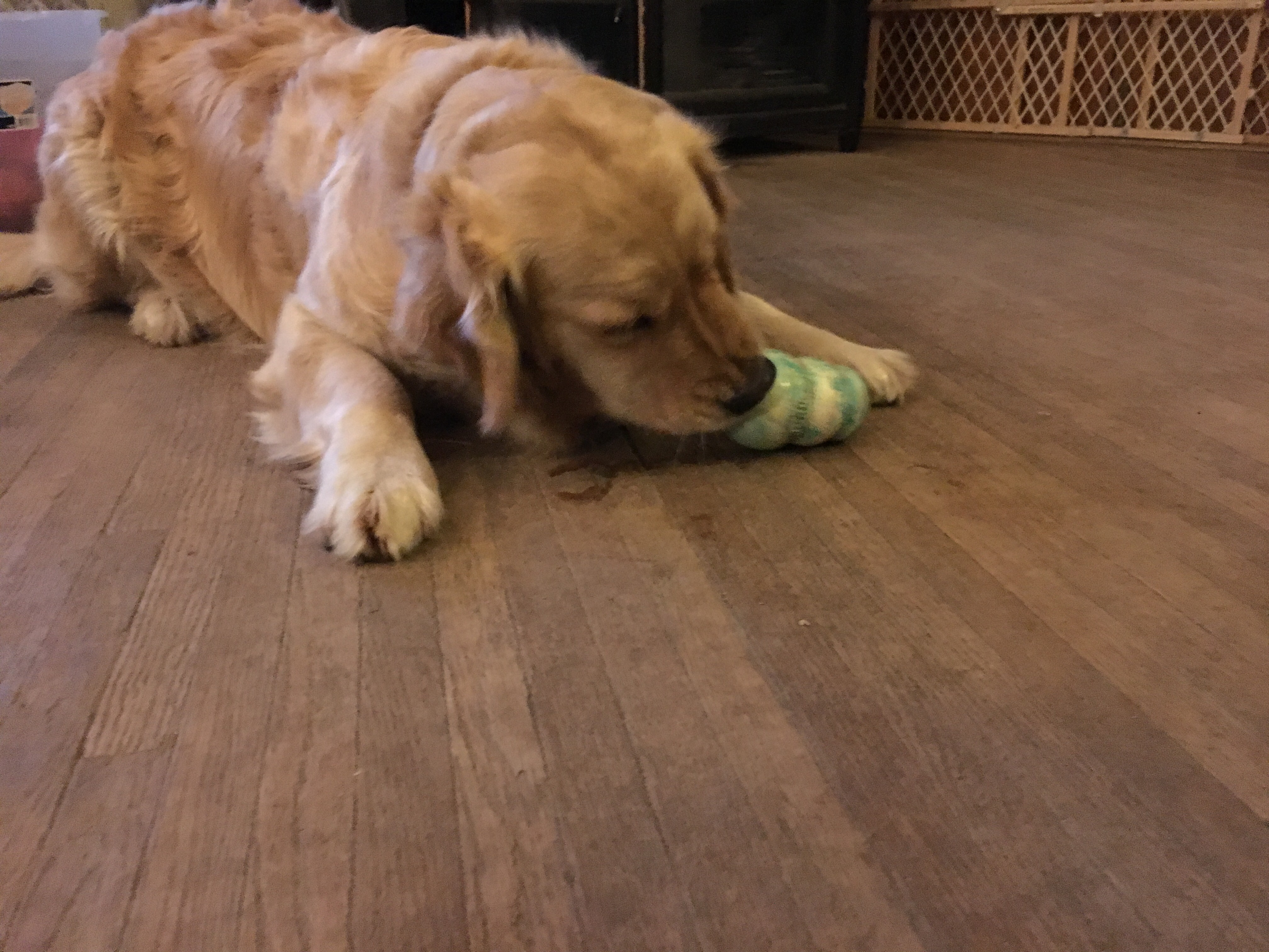 Bessie scoots it all over the floor.