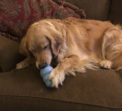 2. You reminded me that I have to get busy filling Lucy’s kong. I bought her two frozen pigs feet yesterday and they are huge! I want her to have them outside though, (it rained all day), say I will give them to her when the sun dries things up today. 🙂