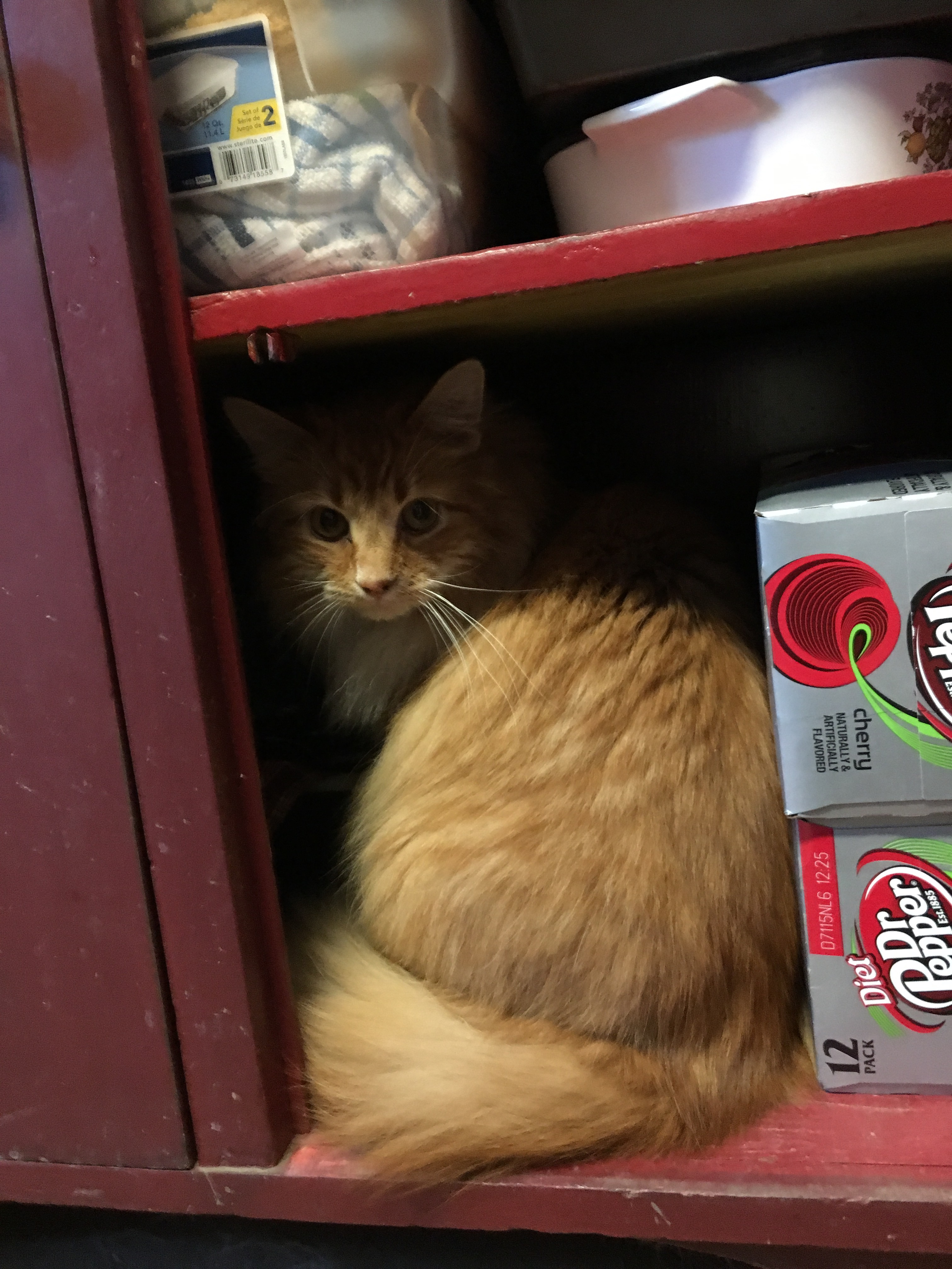 I’m betting you found some treats!! Heee heee I slipped into the cupboard one time and found my Kitty’s food bag on the floor. The Mamma found me with my head buried in the bag. ~sigh~ Sadly I never found the door opened ever again…