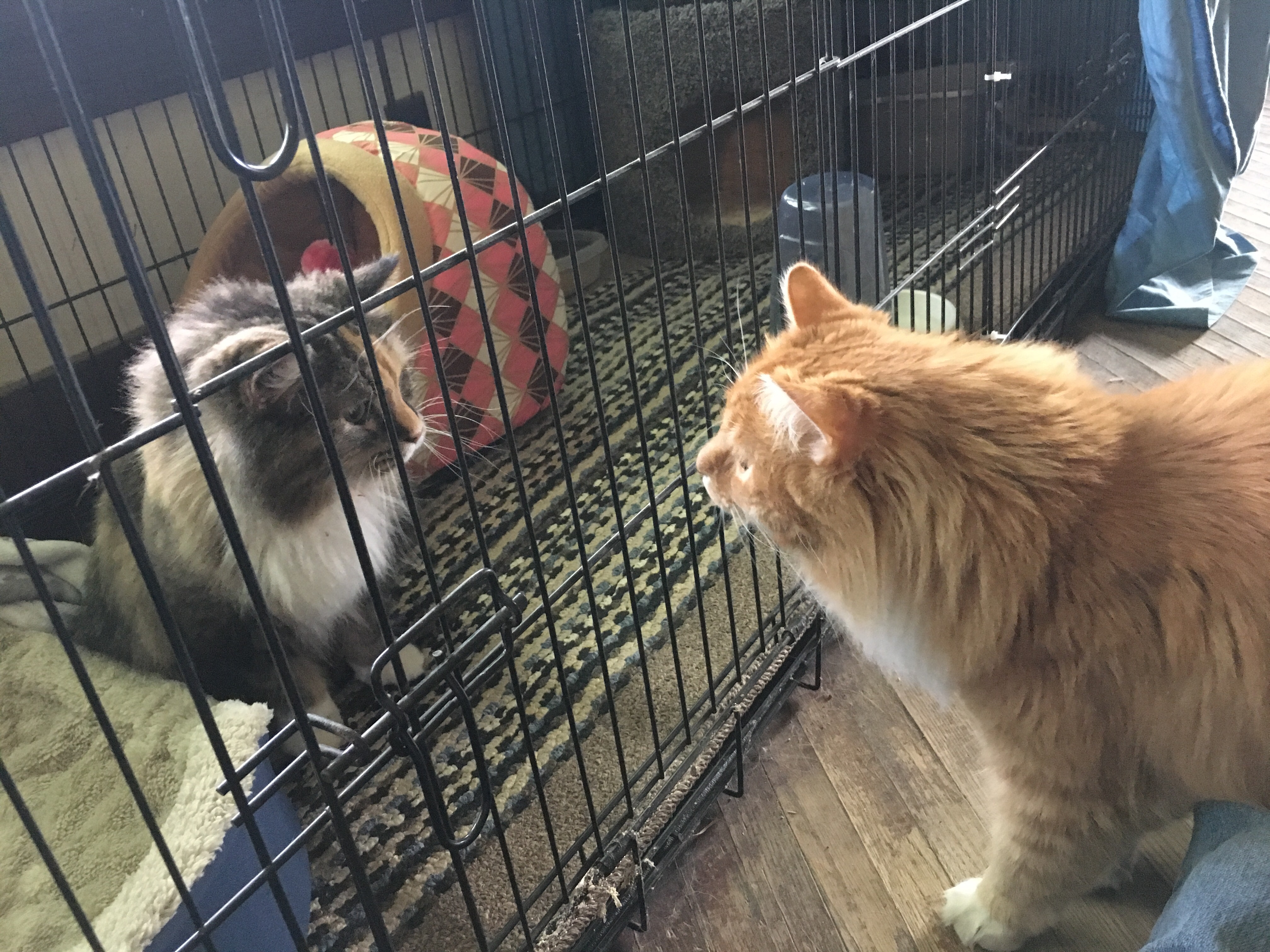 During the course of the day she settled in better than we could have imagined. Linus has been sticking close, which she seems to like. Day 1 done.