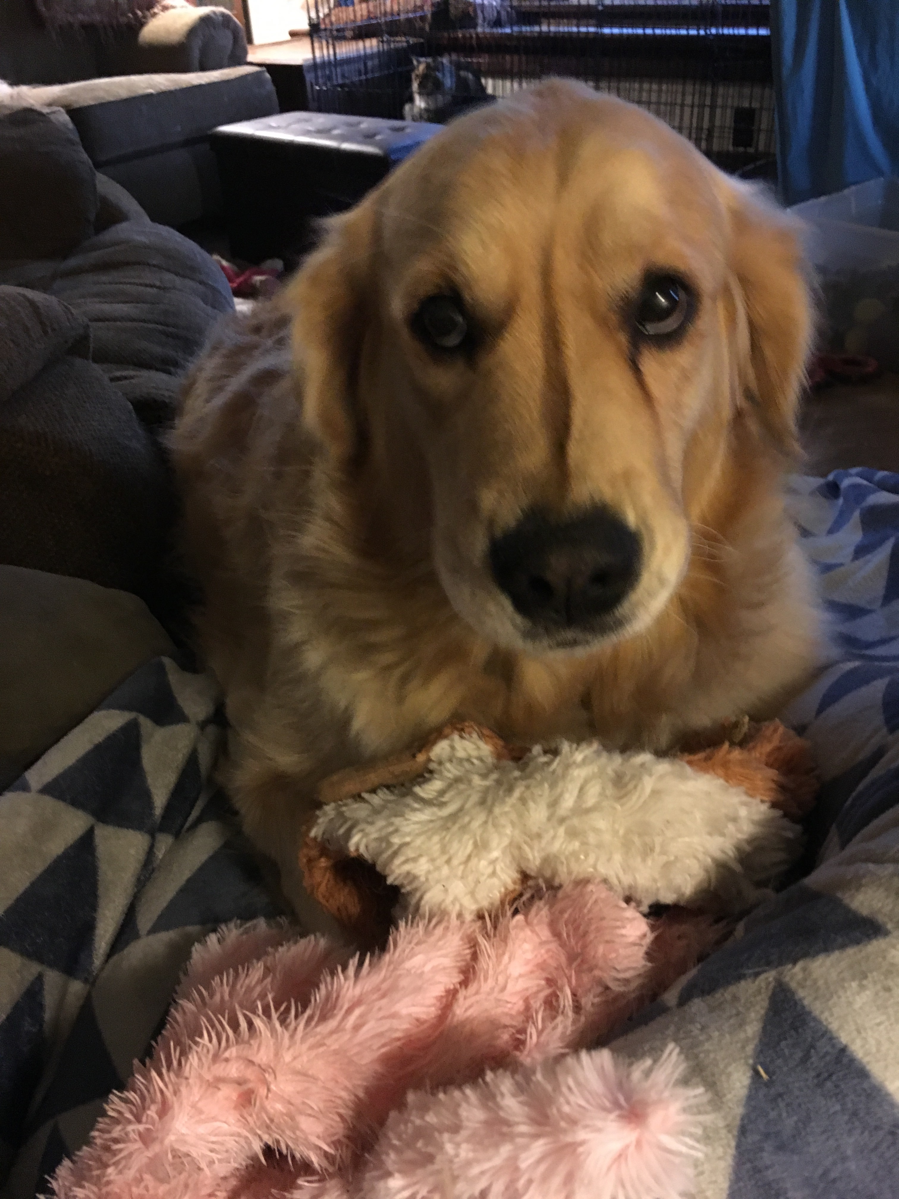 What more could a pup ask for…except well maybe another stuffie.