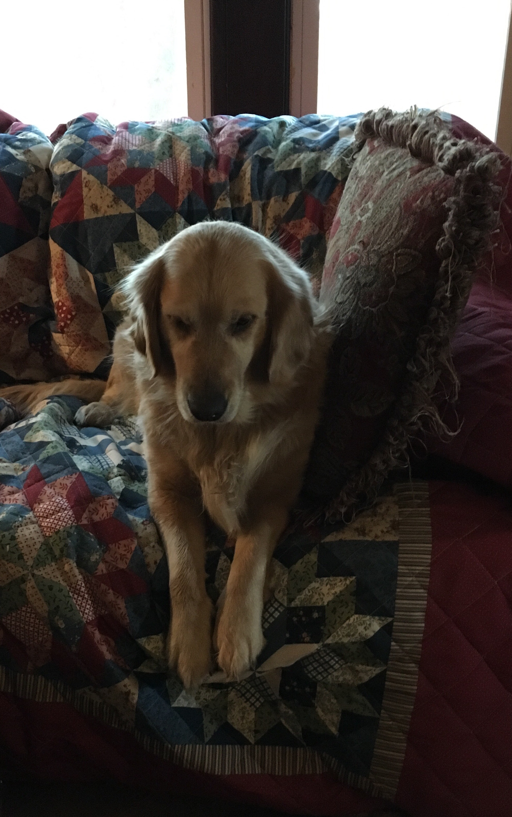 This morning I stubbornly er insistently um er persistently sat there 5 times and 5 times My Margret patted the couch cushion and said my name. That was shorthand for “Belle get off the back of the couch.”      We’ve done this so often that she doesn’t even have to say down anymore. I just know.