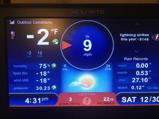 1. Happy New Year, everybody! Our windchill is supposed to be -35F today; Mom hasn’t looked to see if it really is. Something about “not wanting to know”.
