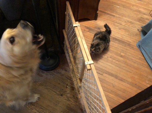 • Shhh, Maggie, if they haven’t figured that out yet let’s not help them ok? Oh and of course I can tell you would never jump over or knock it down either. ~ rumbly purrs Lucy