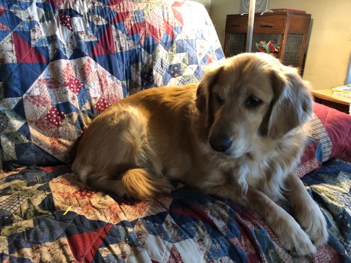 As she was giving me my stop itching medicine in cheese my sisters heard the wrapper rustle and got in line for their bit of cheese. You should have seen the look on Bonnie’s face on being put outside before she got her cheese. In fact it took using the leash to help her the 12 remaining inches out the door to their pup porch. She can be a bit stubborn sometimes.