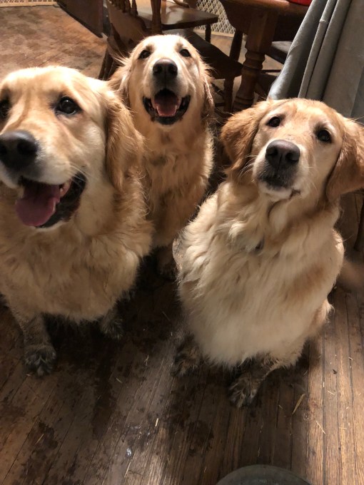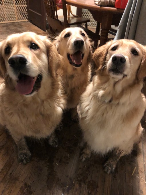• Belle quietly stays right inside the door to be wiped off. She does not like to be wet and muddy. Her sisters on the other hand would race throughout the house before being wiped down if allowed. Hang in there mud season doesn’t last forever.