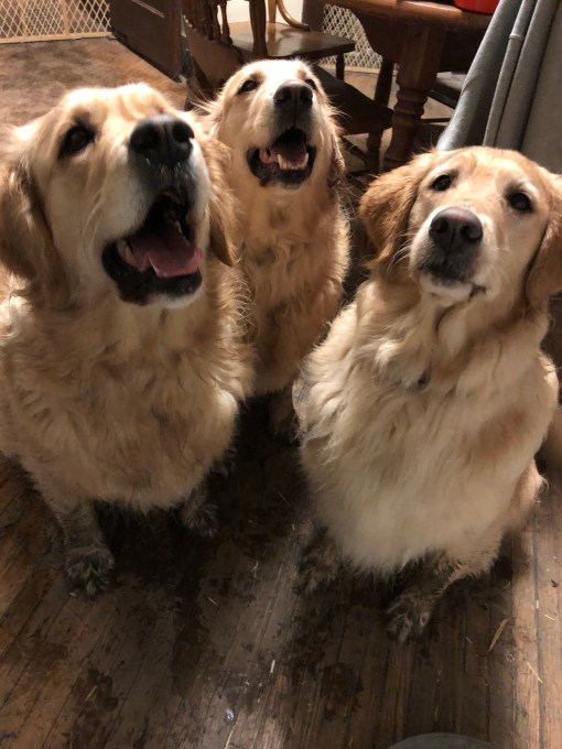 • Belle quietly stays right inside the door to be wiped off. She does not like to be wet and muddy. Her sisters on the other hand would race throughout the house before being wiped down if allowed. Hang in there mud season doesn’t last forever.