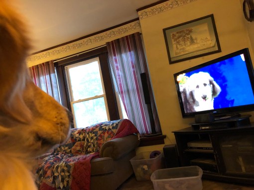 My Margret and My Greg are watching a program from Hallmark called American Rescue Dog Show. Some of the categories are senior dog, best couch potato, talkiest, best snorer, best kisser, best in underbite, best in fetch, best listener and best wiggle butt.