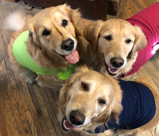 Oh, I just LOVE that you color-coordinated with your collars! All three of you look wonderful! And we’re so glad the shirts work!