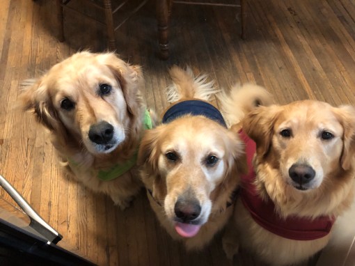 ~ this is Bessie, Belle, and Bonnie ” the wearing our super pup caps and rocking the storm” Pups for the Pups and Kitties.