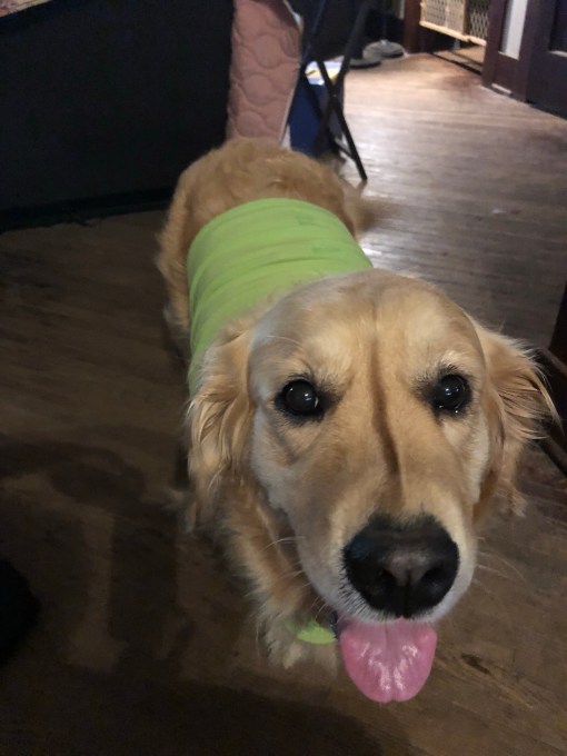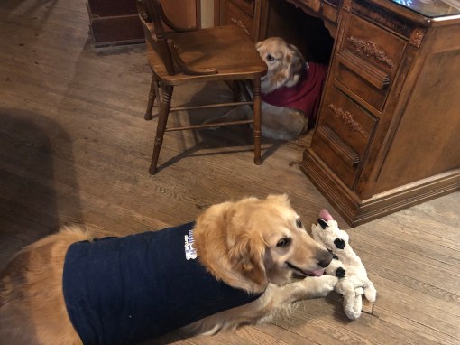 when I put theirs on. That is so unusual for them. Plus the fact that Belle, my I’m not wearing anything I wasn’t born with pup comes running when it’s time to put them one. So that shows me they are comforted when they wear them. I too wish they could show Penelope that it’s a good thing so she would want to wear hers.