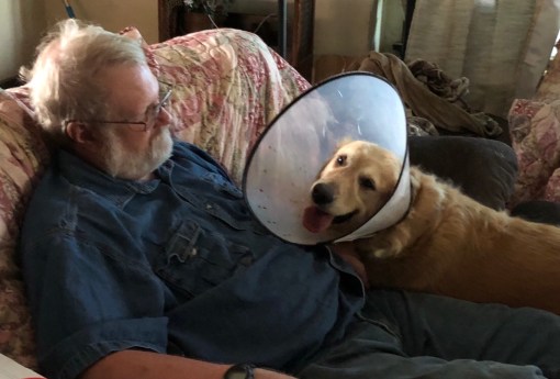 My Greg took me to the vet today. He helped me be brave when they took a scrape of my hotspot. I came home with antibiotics and Prednisone so I get to have a lot of cheese/cream cheese for the next 10 days. Oh and My Greg put the cone back on because I won’t leave socks (or wraps) on my foot. I mean come on white athletic socks? Maybe if they tried something pretty …hmm probably not.