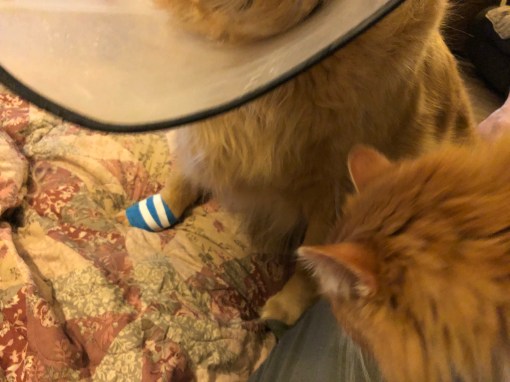 So My Margret noticed that if I moved just right I could still lick my paw. She told My Greg and he said ” Oh Boy!”