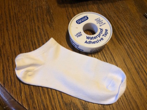 1. Good job, B. I had good luck with the baby socks, too. Except for the time Mom put the tape too tight and when we woke up, my paw was puffed up like an apple. That was scary, but lesson learned….
