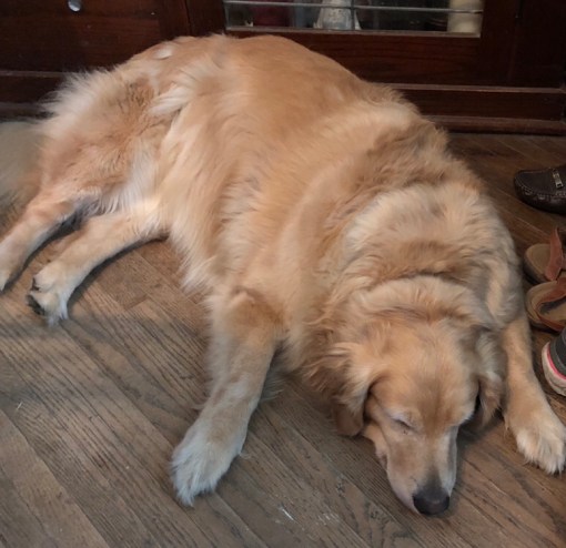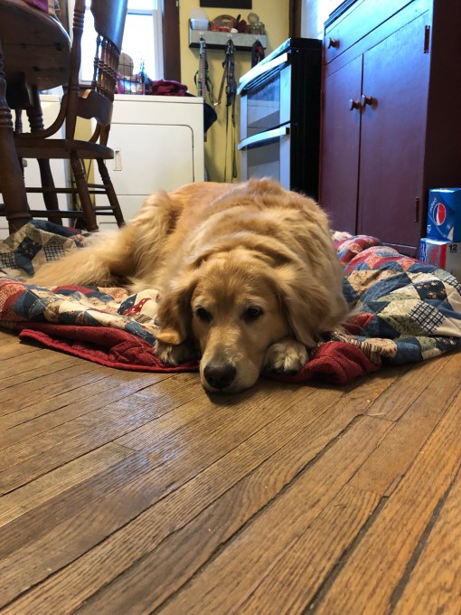 I’ve been really thirsty and drinking a lot more than usual. I’ve also had a couple of accidents. One day last week My Margret followed me around out in our pup pen with a cake pan. Sometimes a pup just wants some privacy you know. I don’t think she would like it if I followed her around with a cake pan! Anyway she found out later that day from Kate the vet tech that I did not have a bladder infection or one of the form of diabetes.