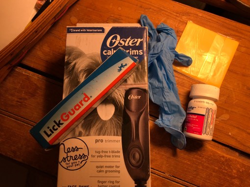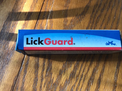 Tonight when she came home she called me to come to her and while she was petting me she reached down to feel my paw. It was soaking wet because well you know it’s itchy and no matter how hard I tried I just had to lick it.