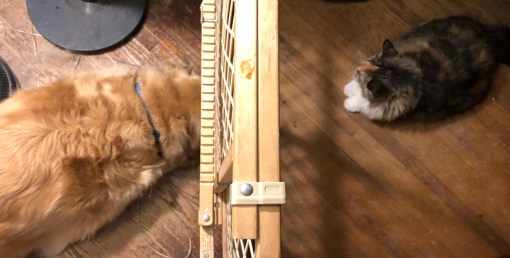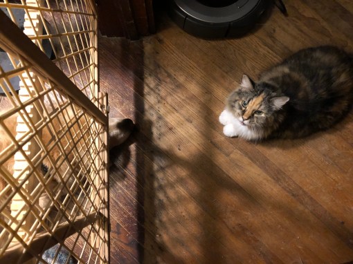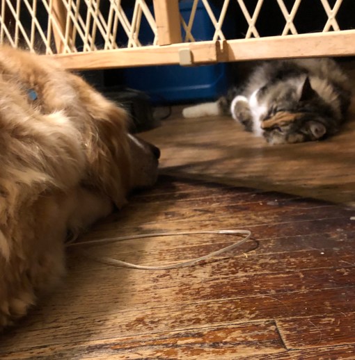 1. B, you are for sure straight up the sweetest kitty-loving pup ever. We like seeing you send your calm energy under the gate. Such a good girl. Mom is afraid to imagine what I would do in that situation. Insanity is a word that comes to mind.