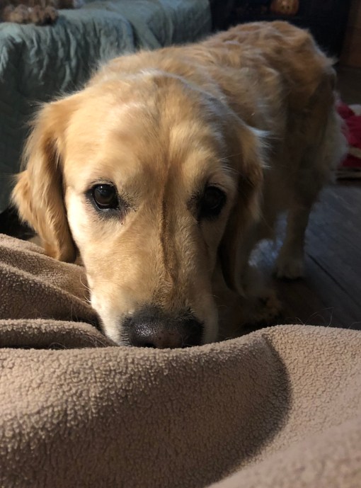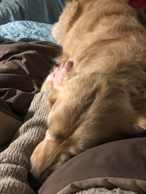 She smiled and said show me sweet pup. And I grabbed a stuffie and came to stand by her. She put her coffee cup down on the table, sat down and hadn’t even gotten the blanket settled before I jumped up to snuggle in close.
