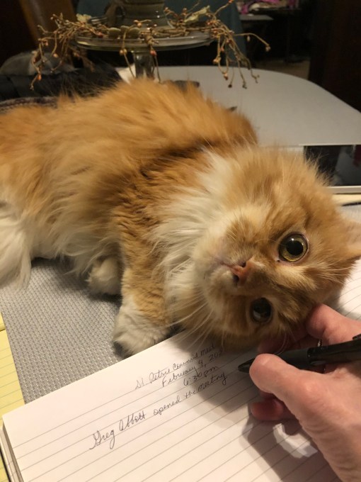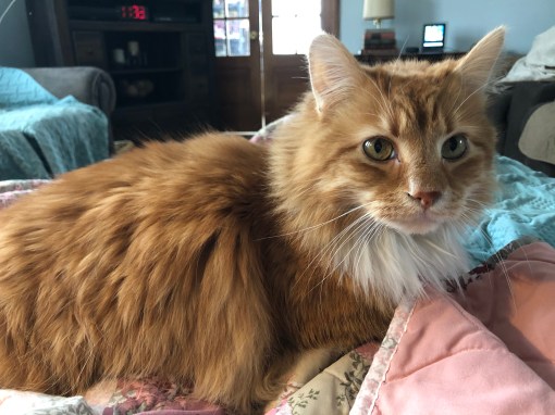 • Hi Mrs. Thatcher! My Margret and My Greg wouldn’t know what to do without me. Thanks, it took a lot of practice to reach that level of cuteness.~rumbly purrs Linus
