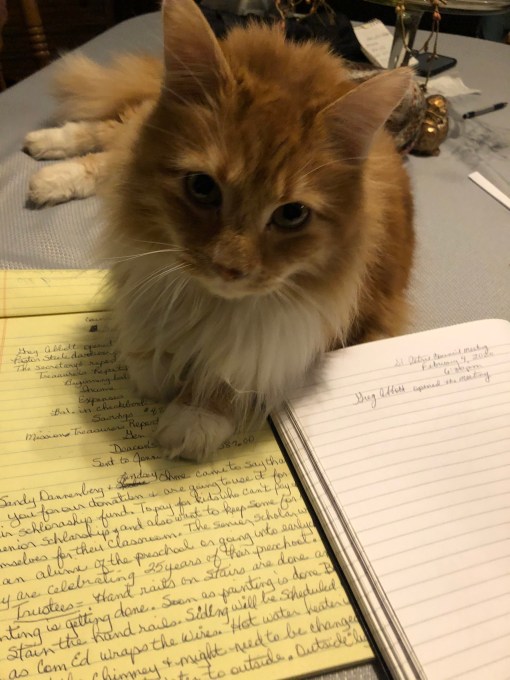 I help her when she is writing the church council meeting minutes by giving her a dose of cute.