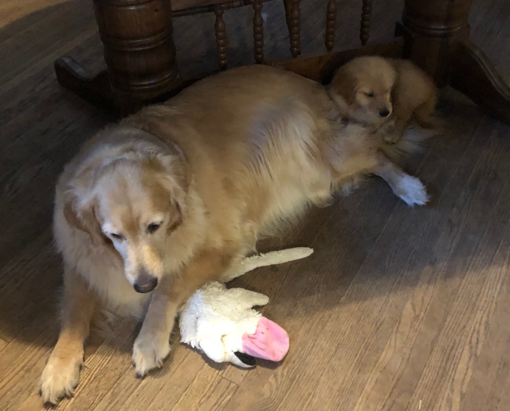 Bea not only lays on Bonnie’s tail she chews on it too. And Bonnie lets her…for awhile. 😉