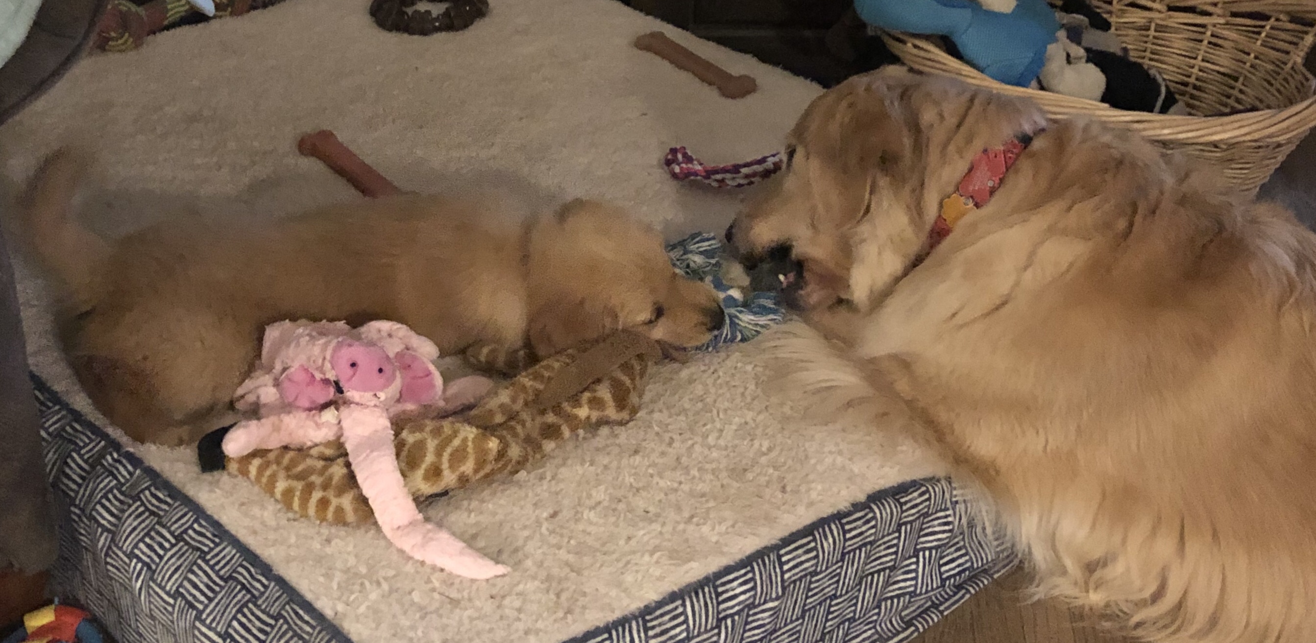 I guess it’s kinda turned into all of ours bed, Mrs. Carolyn. The little one is ok, she has fun toys.~Bonnie Pup