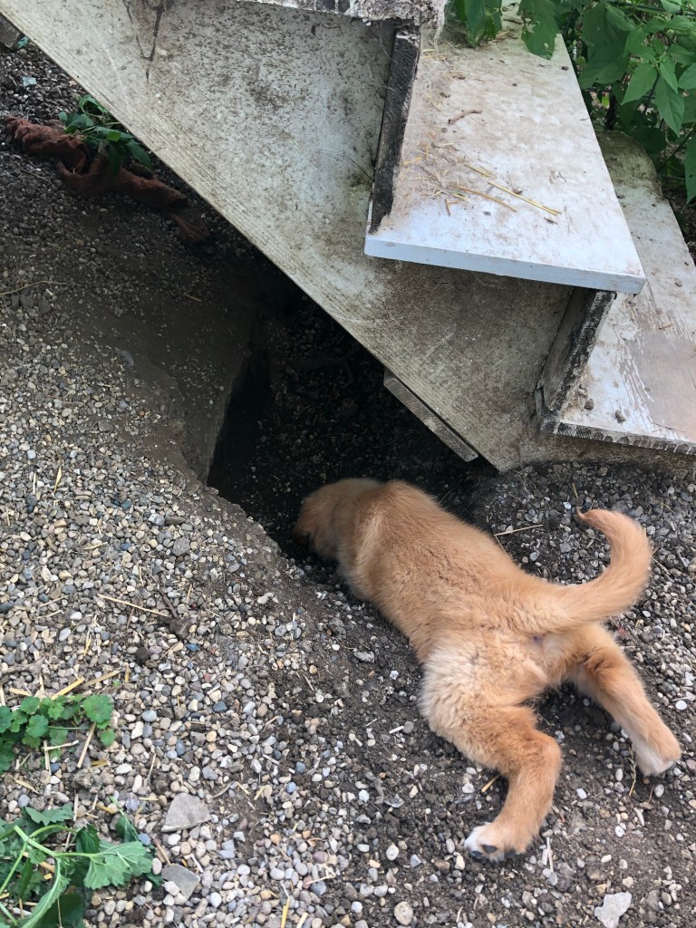 Careful, B. Don’t fall in! Big hole for a little pup.