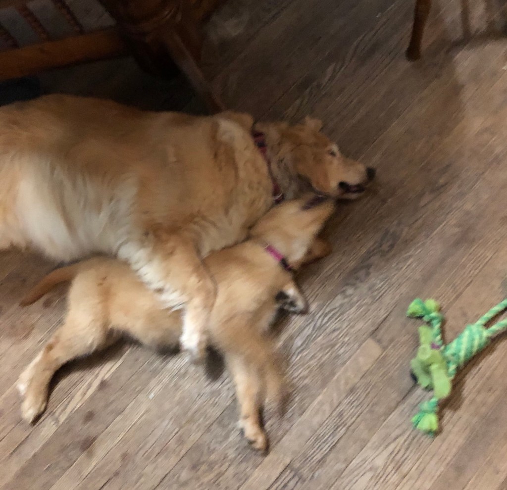 Today’s dose of cute is brought to you by Bonnie Pup ~ When wiggly little sisters want to play but you just want to sleep.