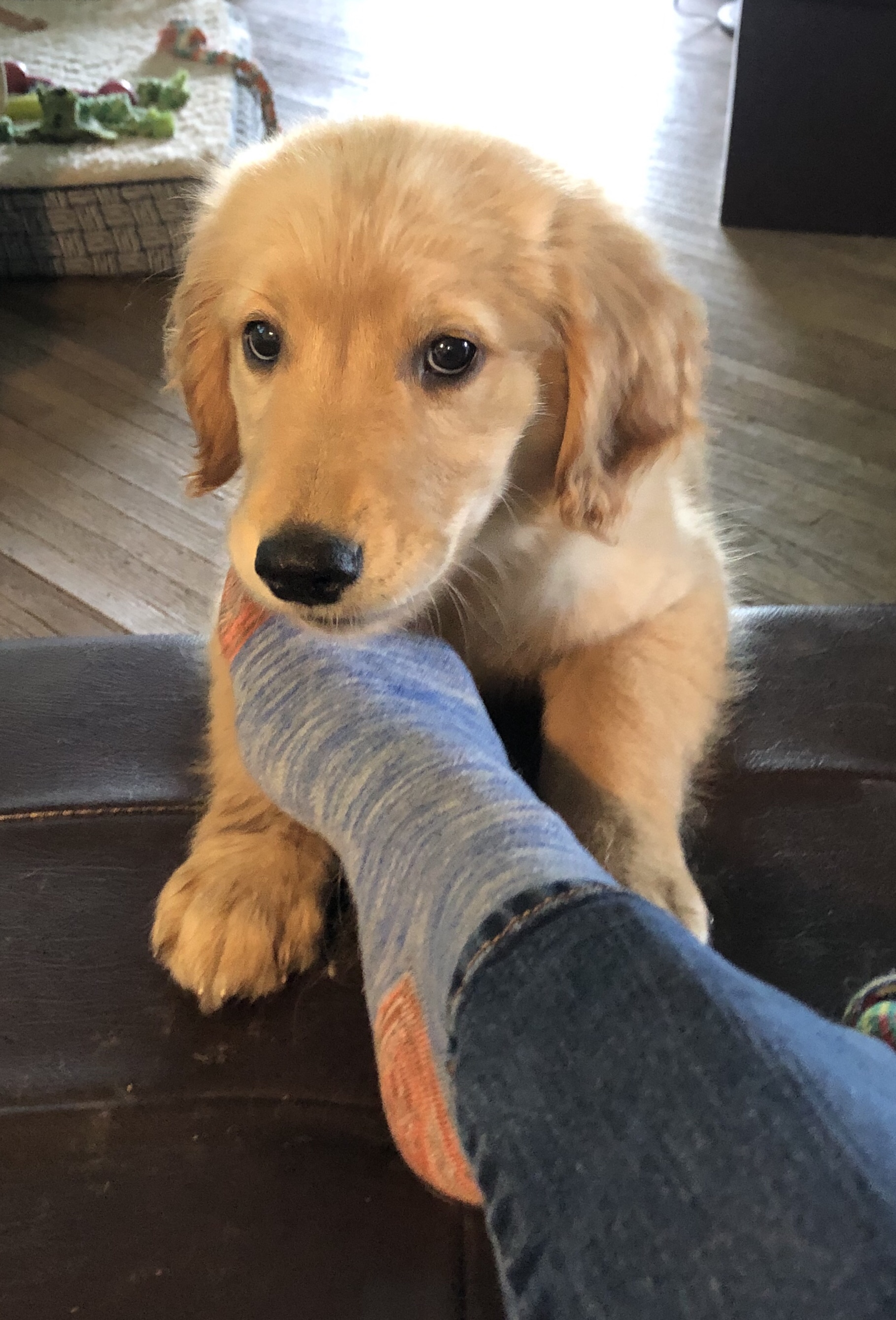 Today’s dose of cute is brought to you by Bea Puppy ~ Chew on your sock? Now why would I want to do that?