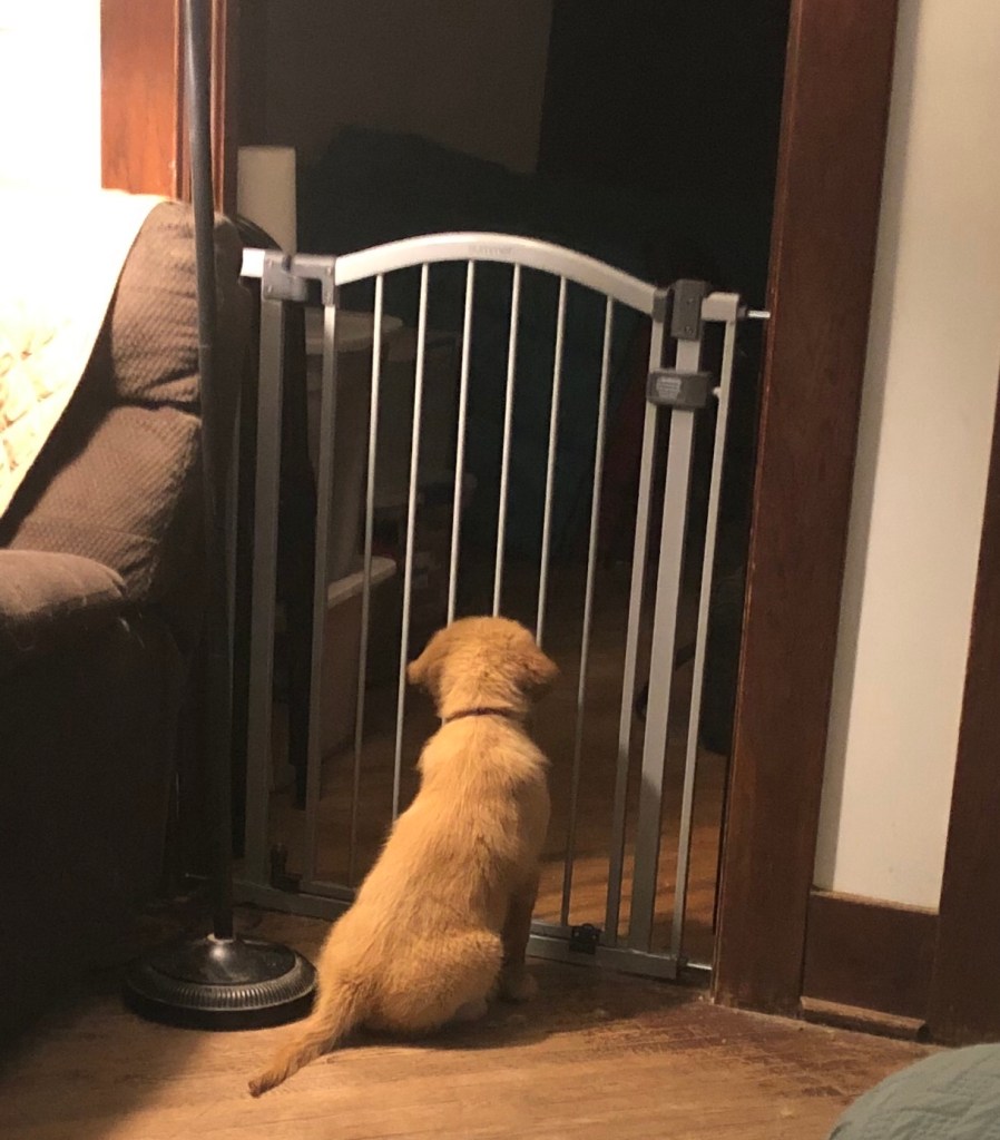 What you just said is why you can’t, Bea. And that gate looks just right for holding up to a growing puppy. I used to sit and watch Xena puppy chew her way out of her pack n play.