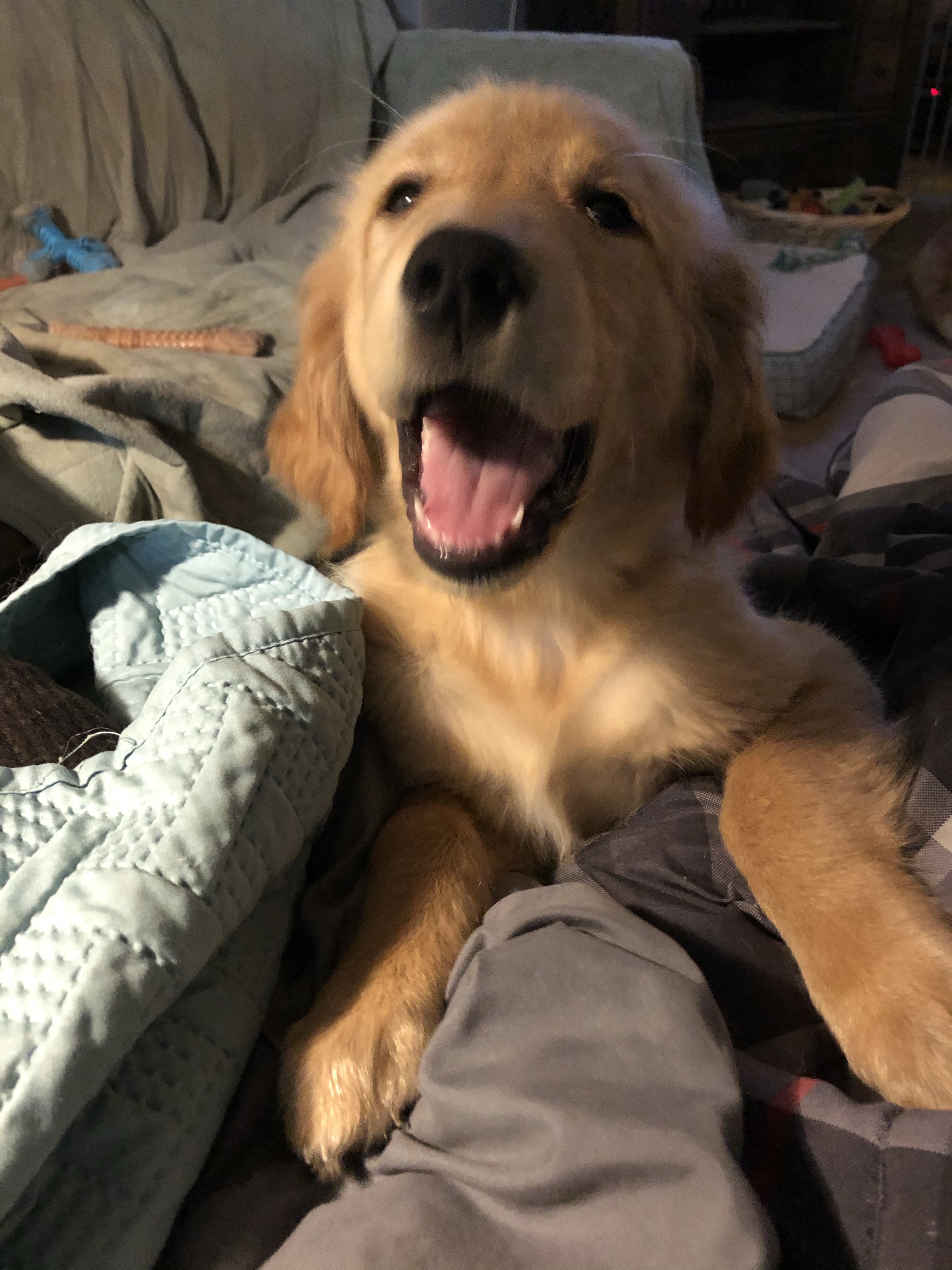 My Margret says potato chips aren’t for puppies but gave me an A for effort. Whatever that is. Sigh….~Bea Pup