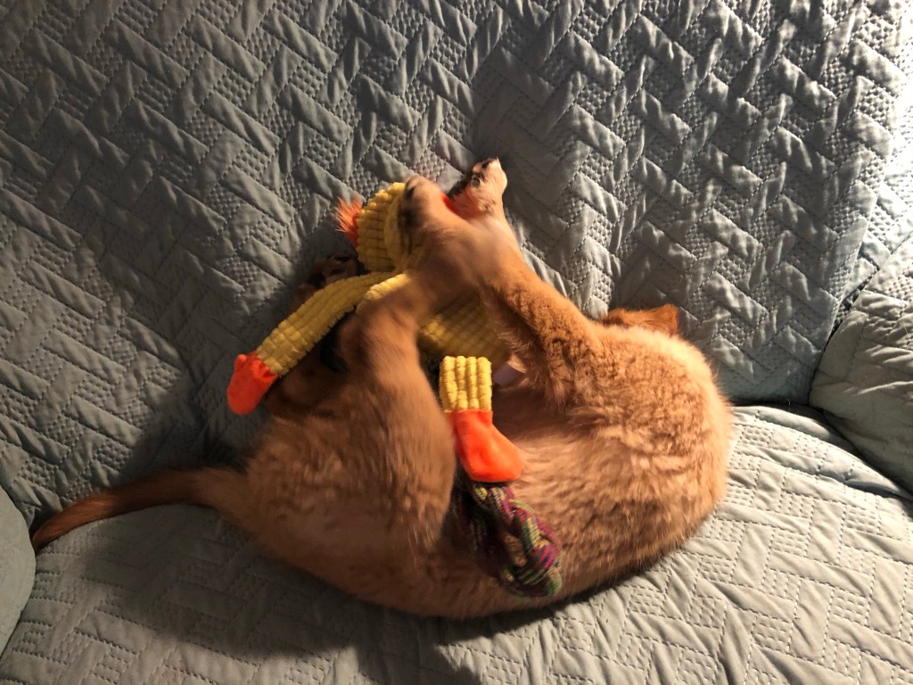 Today’s dose of cute is brought to you by Bea Puppy ~ Wrestling duck time!
