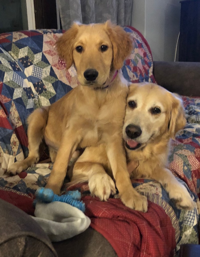 Yep, all of our pups want to be as close to us and each other as they can. It’s a Golden trait. 🙂