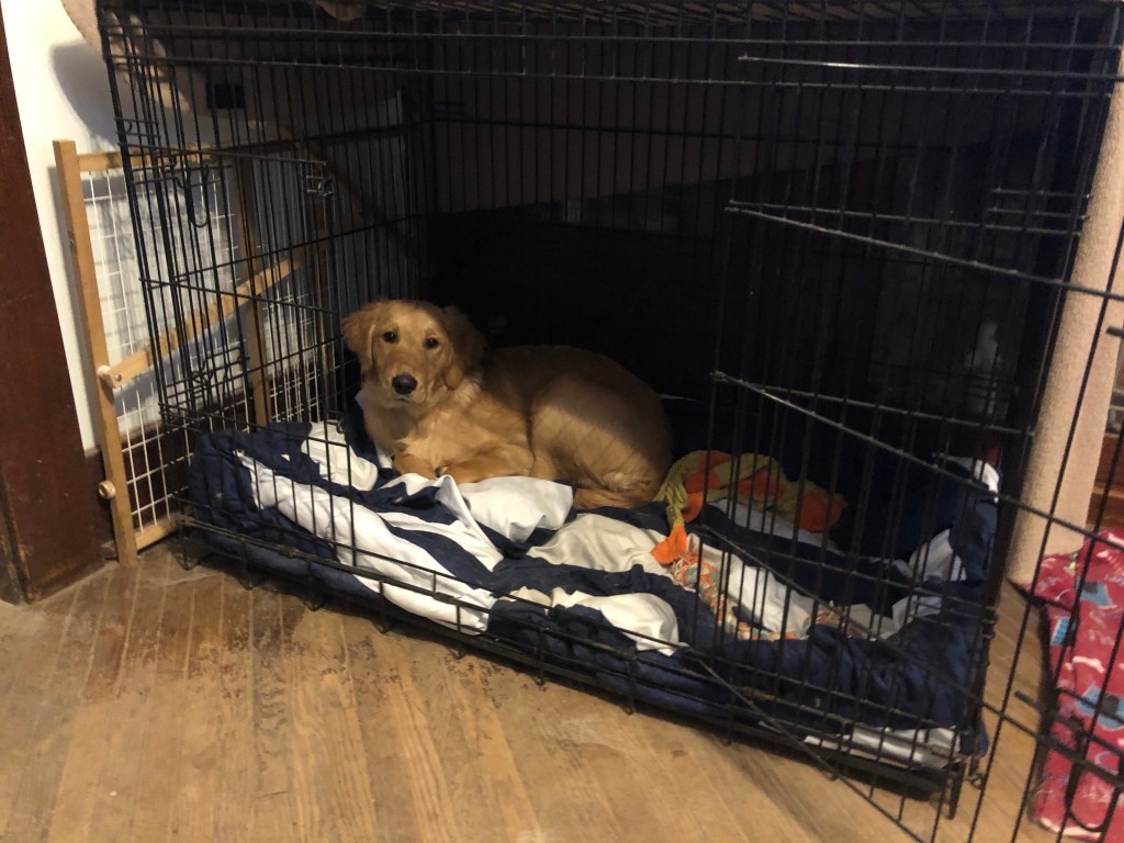 This morning~ Played three times in the snow. Figured out how to go up and down snowy steps. Played rough with my sisters… a lot. Ate breakfast. Then put myself in my crate for a nap all before 7:30am