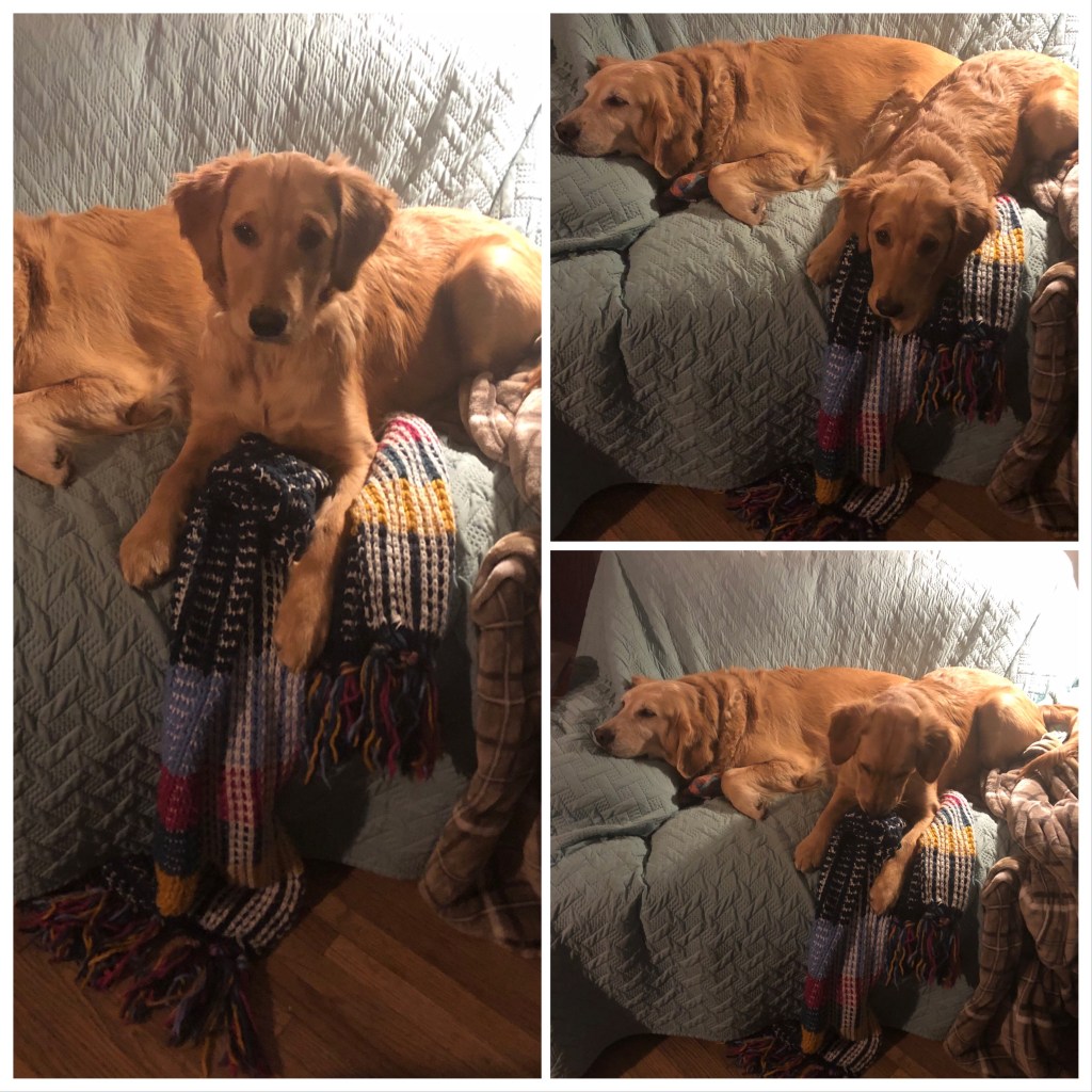 Scarf? Looks like a Bea puppy blanket to us! XOX Xena and Lucy