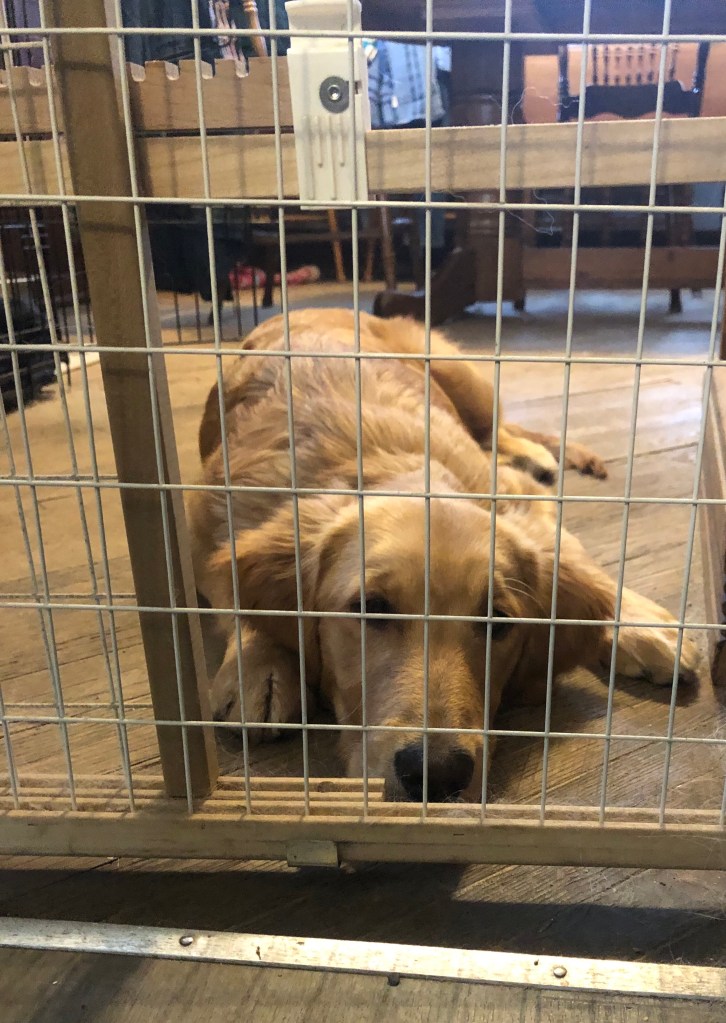 2. That fence is a modified dog jail. Painting is fun. Once I helped the painters by dipping my tail in the paint lid and wagging it all over the place. They probably wished they had thought to put me in dog jail that day!