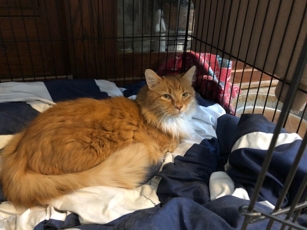 When I was a kitten I used to curl up in the crate with Belle Pup all the time. ~ Linus Kitty
