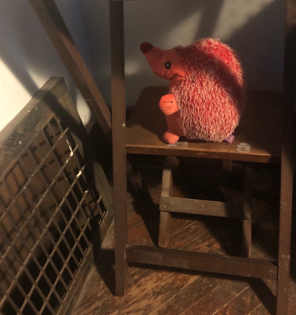 I was kinda hiding until I was all dry so I wouldn’t get everything else wet. It was My Margret’s idea I really wanted to be with Bessie Pup ~ Herbert T. Hedgehog.